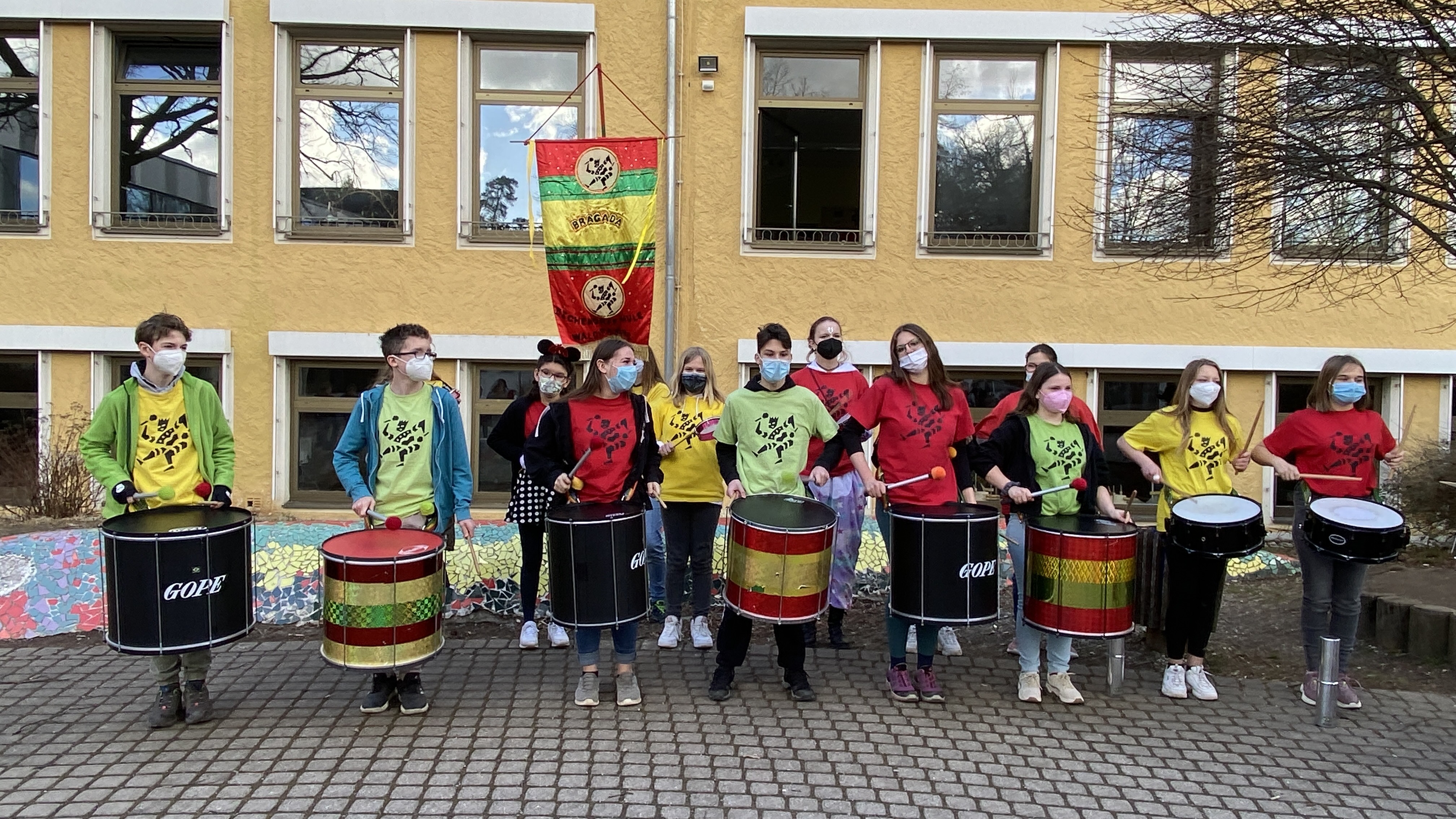 Seit den 90er Jahren wird an unserer Schule getrommelt. Mitreißende Rhythmen aus Afrika und Brasilien sind das Markenzeichen der Trommelgruppe BRAGADA, die unter diesem Namen seit 2002 besteht. Auf Originalinstrumenten erkunden die Schülerinnen und Schüler im Rahmen einer freiwilligen Arbeitsgemeinschaft die spannende Welt energiegeladener Trommel-Rhythmen.